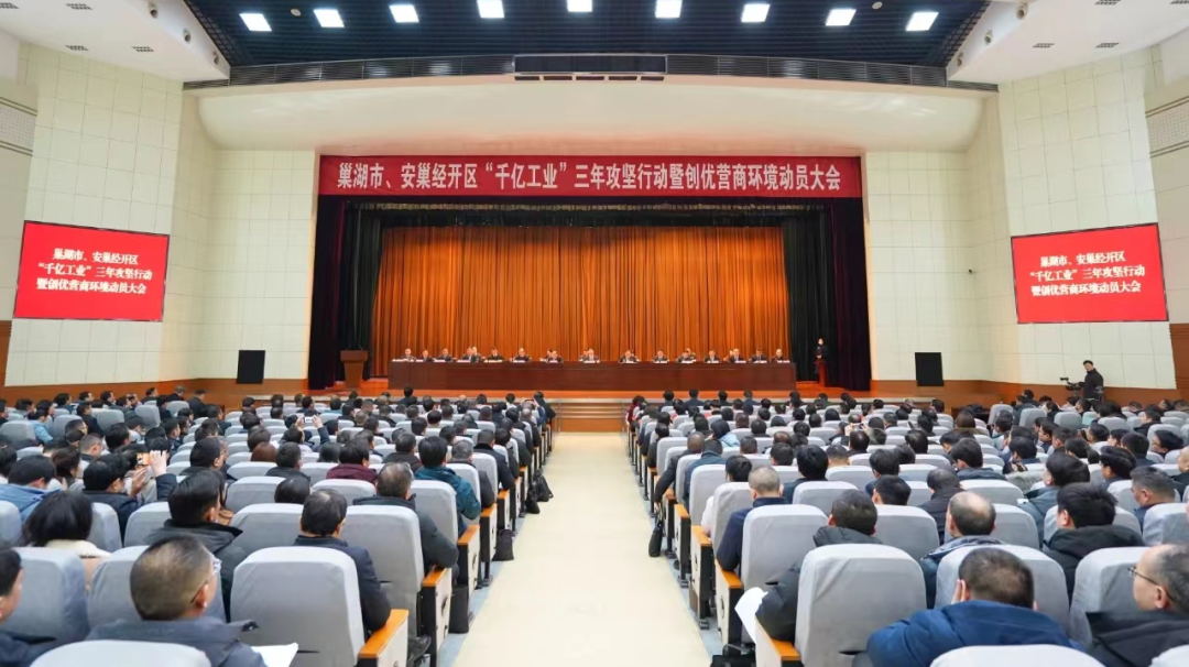 2024 年 2 月 27 日上午,中共巢湖市委、中共安徽巢湖經(jīng)開區(qū)工委在巢湖市行政會務(wù)中心召開巢湖市、安巢經(jīng)開區(qū)“千億工業(yè)”三年攻堅行動暨創(chuàng)優(yōu)營商環(huán)境動員大會,傳達學(xué)習(xí)中央、安徽省、合肥市經(jīng)濟工作、創(chuàng)建一流營商環(huán)境等會議精神,通報巢湖市工業(yè)立市三年倍增行動計劃完成情況及安巢經(jīng)開區(qū)管委會2023 年重點工作任務(wù)完成情況,表彰2023 年度高質(zhì)量發(fā)展企業(yè),發(fā)布 《巢湖市、安巢經(jīng)開區(qū)“千億工業(yè)”三年攻堅行動計劃(2024-2026 年)及2024年實施方案,安巢經(jīng)開區(qū)黨工委書記兼管委會主任、巢湖市委書記張紅軍出席會議并講話。巢湖市四大班子及安巢經(jīng)開區(qū)委領(lǐng)導(dǎo)參加會議。尚德集團黨總支書記、尚德科技(安徽)有限公司總經(jīng)理許梁梅受邀參會并領(lǐng)取安巢經(jīng)開區(qū)高質(zhì)量發(fā)展“產(chǎn)能提升五強”殊榮,尚德環(huán)??萍加邢薰境?wù)副總經(jīng)理張春、尚德軌道(安徽)有限公司總經(jīng)理助理張玉珍作為億元工業(yè)企業(yè)代表參會,學(xué)習(xí)領(lǐng)會會議精神。