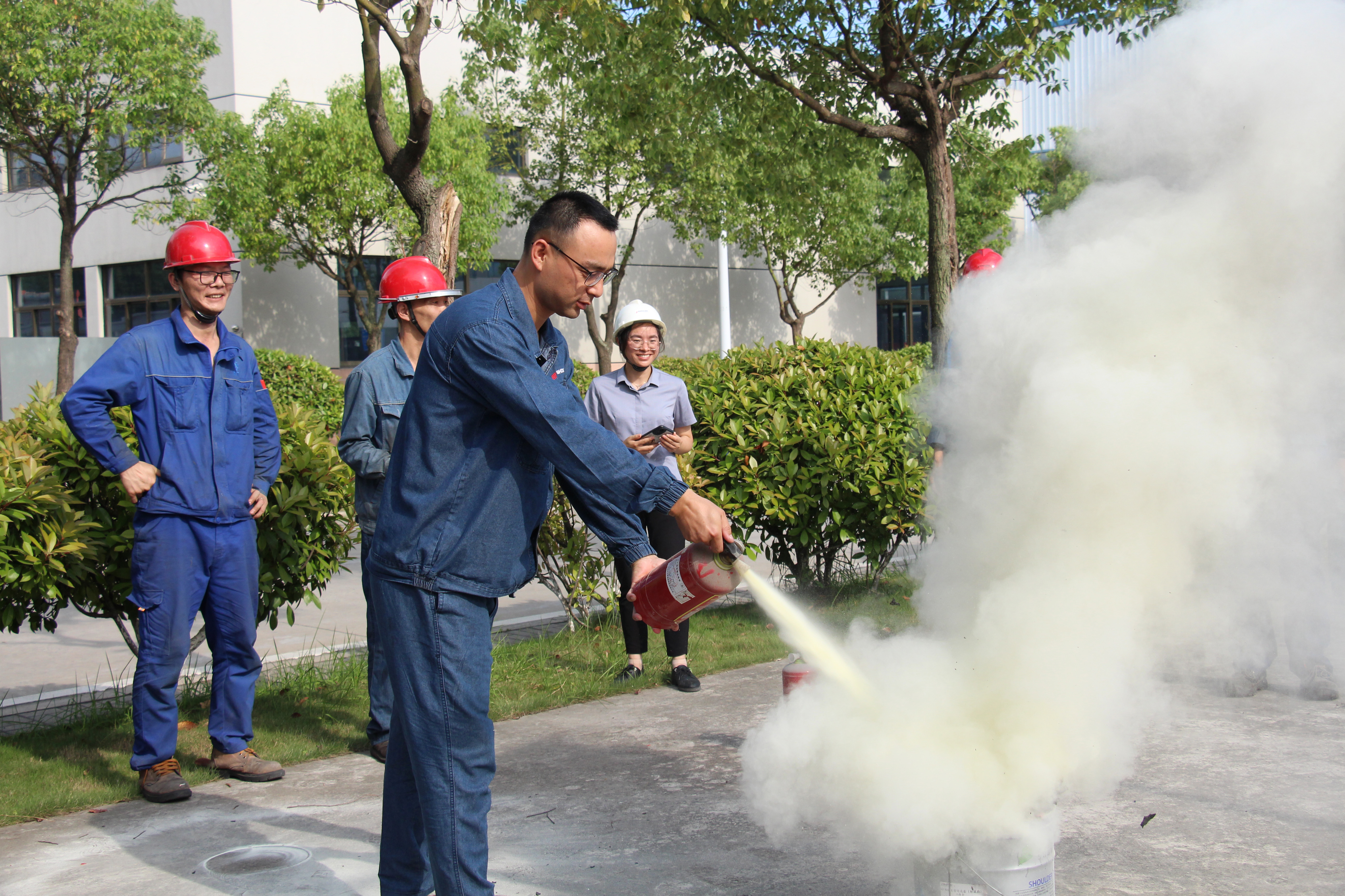 “手提滅火器把手,在距離起火點(diǎn)1.5米左右處,將滅火器朝下,在室外使用時(shí)注意占據(jù)上風(fēng)口......”演練結(jié)束后,安環(huán)部孫輝詳細(xì)示范了干粉滅火器的正確使用方法,傳授“提、拔、握、壓”四字滅火操作口訣,在場(chǎng)員工踴躍參與實(shí)操。