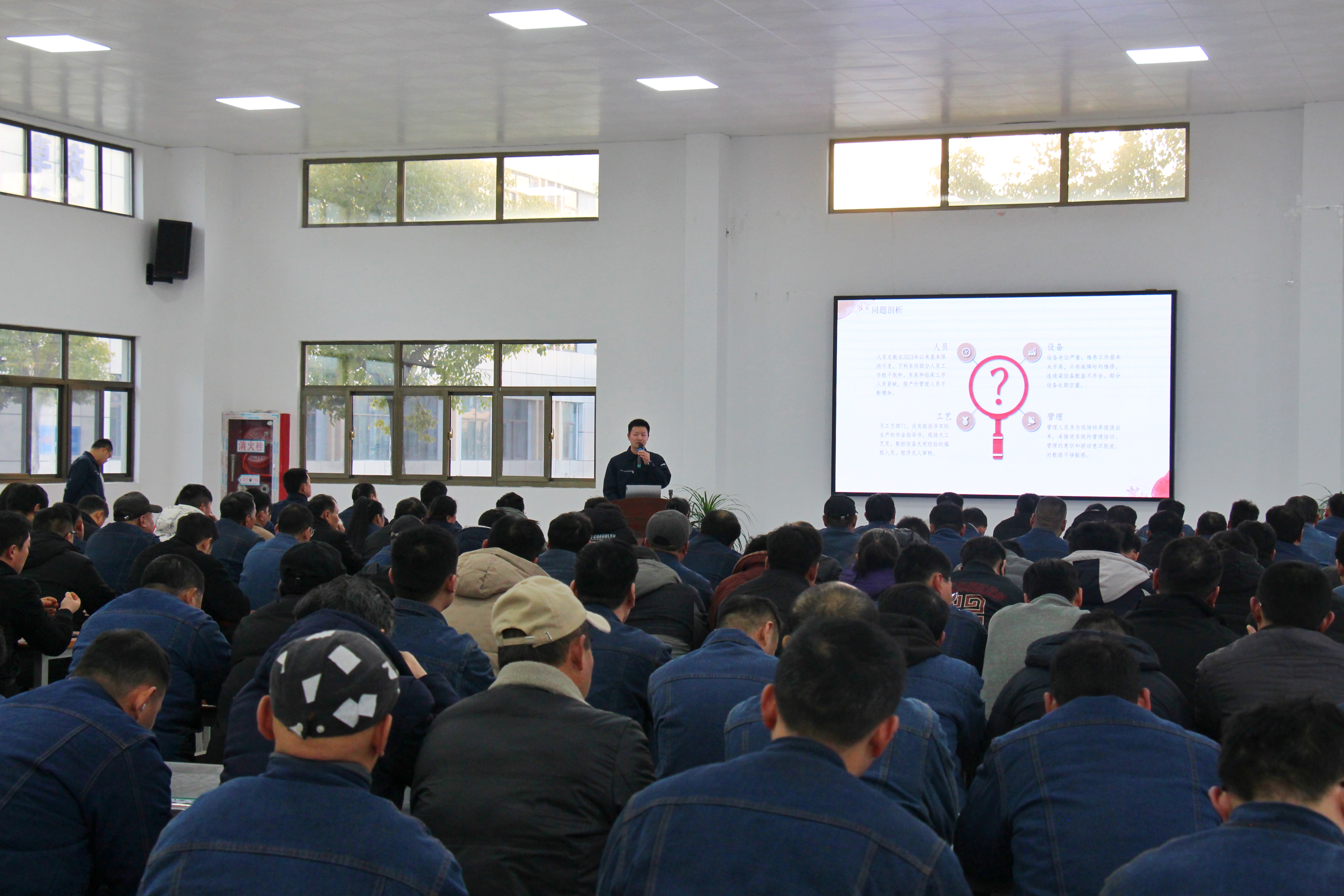 大會由生產(chǎn)部副部長方勝軍主持,各部門、車間負責(zé)人及生產(chǎn)骨干共計140余人參會,副總經(jīng)理裴善凱出席會議并講話。