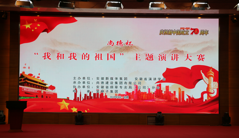 本次“尚德杯”安徽省《我和我的祖國(guó)》主題演講大賽,由安徽省新媒體集團(tuán)和安徽省演講學(xué)會(huì)主辦、尚德集團(tuán)承辦。大賽的成功舉辦,在全省上下弘揚(yáng)了以愛國(guó)主義為核心的偉大民族精神,為中華人民共和國(guó)成立70周年獻(xiàn)上一份賀禮。